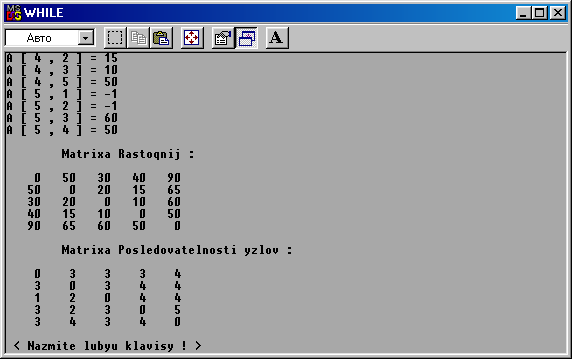 printf ( "Matrixa Posledovatelnosti yzlov :" );