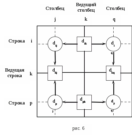 Основной шаг. Задаем строку k и столбец k как ведущую строку и ведущий столбец.