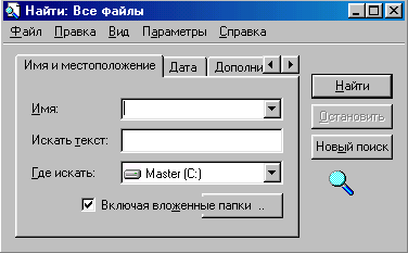 Искать текст – если вы ищете файл, внутри которого содержится специфический текст, и при этом не помните ни места, куда вы его поместили, ни название файла, эта строка может оказаться настоящей спасительницей. В неё нужно ввести текст, желательно, чтобы это были специфические слова, которые точно есть в искомом файле и вряд ли есть в других файлах. Это может быть фамилия или какой-то термин, специфичный для данного текста. При этом в строку Имя необходимо ввести обозначение *.*, для того чтобы были просмотрены все файлы.