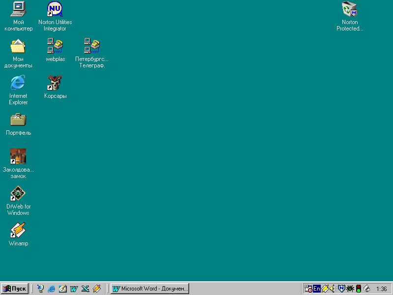 Как видно я запустил 3 окна, а на панели задач 3 прямоугольных значка. Каждому окну соответствует значок на панели задач. Окна на рабочем столе накладываются одно на другое, уложены пачкой. Поочерёдно нажимая на прямоугольные значки на панели задач, мы выводим на передний план соответствующие окна с программами на рабочем столе.