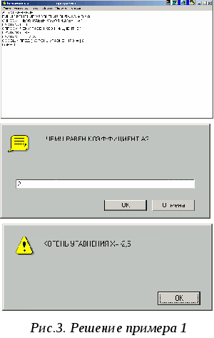 Если при очередном вызове параметр А оказался больше 200, то программа остановится. В противном случае последует запрос и ввод коэффициентов А и В, расчет значения Х и новый вызов с увеличенным параметром.
