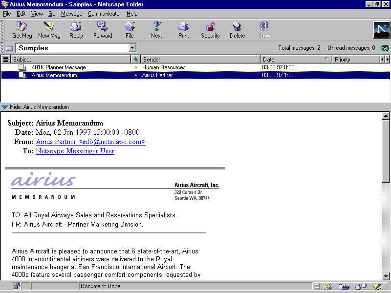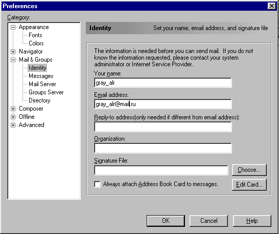 E-mail. Использование программы Mail Box (Netscape Communicator).