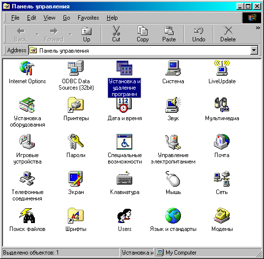 2. Дважды щелкните мышью на пиктограмме Установка и удаление программ.