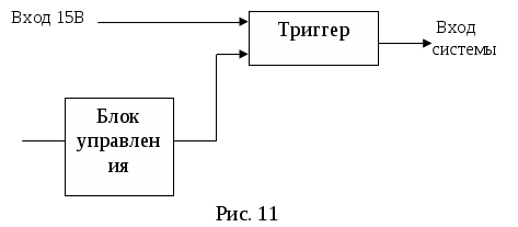 Т.к. постоянный во времени аналоговый сигнал амплитудой 15В уже используется для питания микросхем, то блок для своевременной подачи стандартного сигнала будет состоять только лишь из одного триггера пропускающего этот сигнал по команде блока управления схемы системы телеизмерения (рис.11).