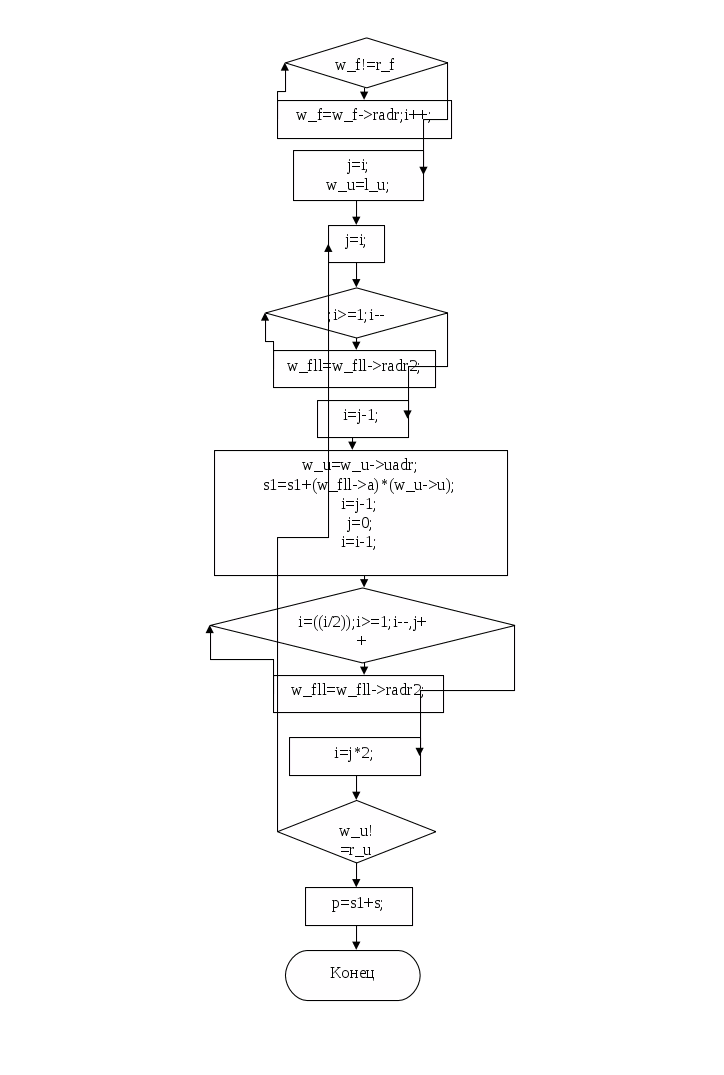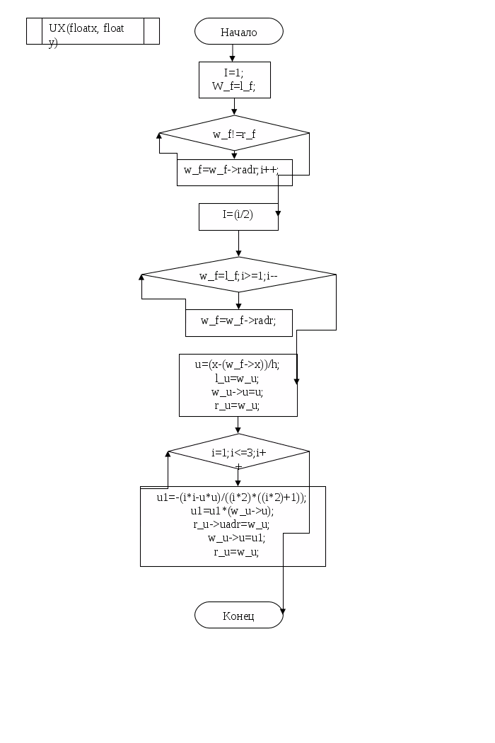 Удалось построить интерполяционный многочлен и вычислить по нему значение функции для заданного значения аргумента. Составлена блок схема алгоритма и программа на языке С++ (Приложение) для вычисления заданного интерполяционного многочлена. В программе предусмотрена возможность ввода любого числа значений функции для чего организованно хранение ее значения при помощи линейного списка.