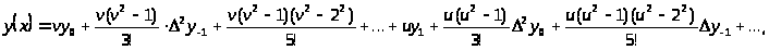 Р е ш е н и е. По данным значениям функции составляем таблицу разностей (табл. 1), из которых видно, что четвертые разности в данном примере практически равны постоянны, а пятые разности практически равны нулю, и поэтому мы их в дальнейших вычислениях не будем принимать во внимание.