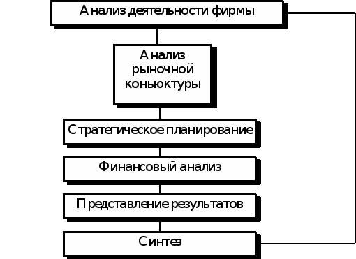 Как видно из схемы, прежде всего необходимо проанализировать деятельность предприятия, чтобы выявить возможность или невозможность производства данного товара. В случае, если производство невозможно, необходима аренда или покупка оборудования, привлечение новых ресурсов или переориентация на другой продукт. Если же производство возможно в данных условиях, то встает вопрос об анализе сектора рынка, в который войдет продукт. Далее идет процесс непосредственно планирования. Он начинается с выбора общей стратегии действий.
