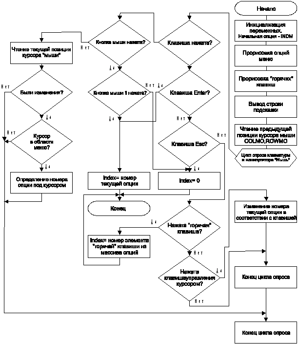Функция выбора опции из меню с использованием ìàíèïóëÿòîðà "Ìûøü" èëè êëàâèàòóðû. 70