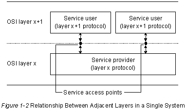 Уровневая модель OSI исключает прямую связь между соответствующими уровнями других систем. Следовательно, каждый уровень Системы А должен полагаться на услуги, предоставляемые ему смежными уровнями Системы А, чтобы помочь осуществить связь с соответствующим ему уровнем Системы В. Взаимоотношения между смежными уровнями отдельной системы показаны на Рис.1-2.