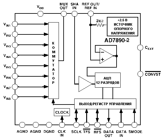 AD7890 – АЦП, УВХ, ИОН, аналоговый коммутатор,