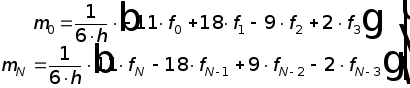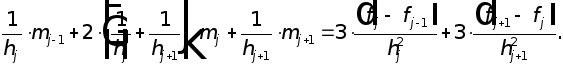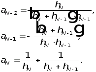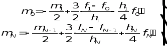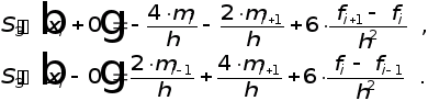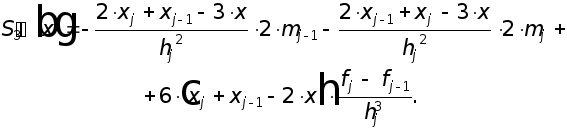 На плакате (1) показаны формулы сплайн-интерполяции с переменным шагом. Эту теорию мы используем в работе. Выражение для сплайна на частичном отрезке [x>j-1>, x>j> ] имеет вид (плакат), где m>j> - наклоны сплайна в узлах, которые определяются из решения СЛАУ (плакат). Поскольку число уравнений на 2 меньше, чем число узлов, то необходимо дополнить их краевыми условиями. На плакате показаны 2 вида этих условий.