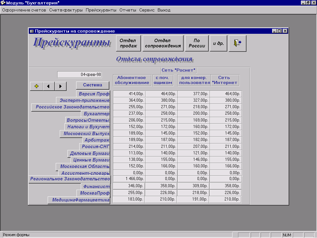 В этом ряду особое место занимают базы данных и другое программное обеспечение, связанное с их использованием в качестве инструмента для делопроизводства и рационализации финансового труда. Их использование позволяет сократить время, требуемое на подготовку конкретных маркетинговых и производственных проектов, уменьшить непроизводительные затраты при их реализации, исключить возможность появления ошибок в подготовке бухгалтерской, технологической и других видов документации, что дает для малого предприятия прямой экономический эффект.