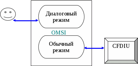CFDIU -> начал работу. OMSI -> начал работу. Шина передачи данных -> активна. CFDIU -> отправил команду Log Off. Шина передачи данных -> передаёт команду на нужный OMSI. OMSI -> переходит в номальный режим.