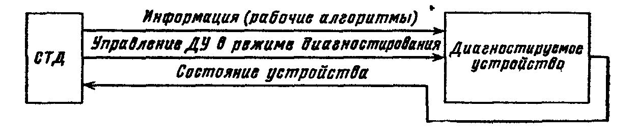 Рис. 18. Схема взаимодействия диагностирующего и диагностируемого устройств при диагностированию по методу эталонных состояний.