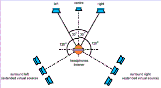 Когда вы начинаете проигрывание, декодер обрабатывает цифровой поток в режиме реального времени, разделяя его на индивидуальные каналы и передавая их для воспроизведения на шести акустических колонках. (Или, декодер может делать еще и простой ремикс, т.е. новое микширование, для создания лишь нескольких выходных каналов. Если у вас имеется меньше чем шесть колонок, например, если у вас всего две колонки, тогда канал сабвуфера (низкочастотный) и центральный (диалогов) добавляются одновременно к обоим выходным каналам. Задний левый канал добавляется к левому выходному каналу, задний правый к правому выходному каналу. 3D звуковой процесс может быть использован для "имитации" наличия реально отсутствующих акустических колонок.)