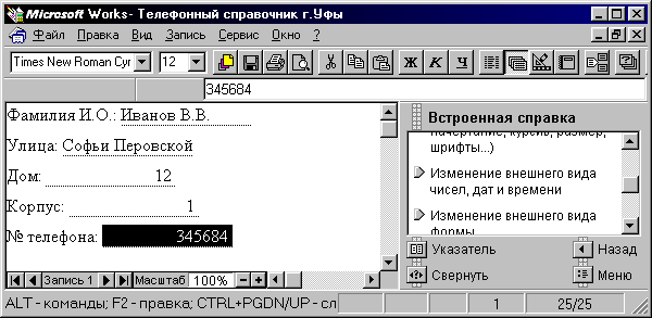 Создание базы данных в интегральном пакете Works