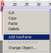 После этого переходите на нужный кадр и создаете в нем ключевой кадр (см. рисунок). Ключевые кадры - это некие вехи на пути перемещения нашего объекта. Все промежуточные перемещения DreamWeaver сделает сам.