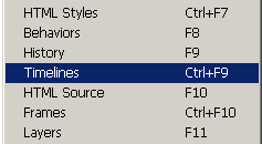 Все анимаця в DreamWeaver прячется в меню Window под пунктом Timeline. Ленивые могут просто нажать Ctrl+F9, а не лазить по всяким менюшкам...
