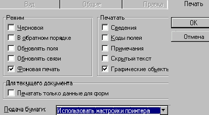 Параметры, влияющие на внешний вид документа, перечислены ниже: