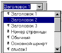 стилей абзацев в списке стилей