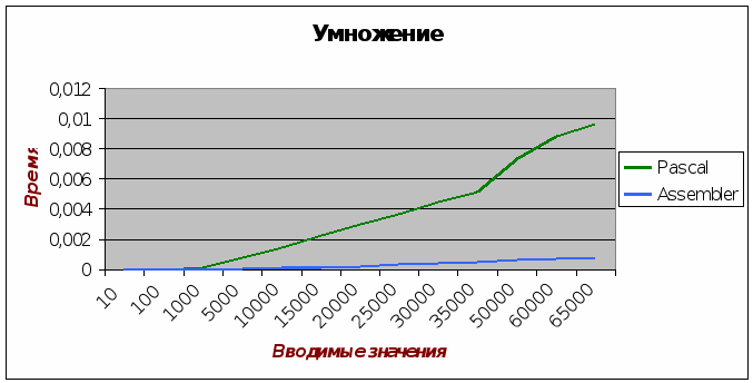 При имеющихся у нас данных мы можем смело сделать выводы, что компилятор языка Pascal (и многих других языков программирования) расходует ресурсы микропроцессора неэкономно, тратя много времени на различные «лишние» действия, которые приводят, как мы заметили, к заметному снижению производительности.