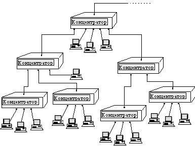Многопортовый повторитель часто называют концентратором (hub, concentrator), что отражает тот факт, что данное устройство реализует не только функцию повторения сигналов, но и концентрирует в одном центральном устройстве функции объединения компьютеров в сеть. Практически во всех современных сетевых стандартах концентратор является необходимым элементом сети, соединяющим отдельные компьютеры в сеть.