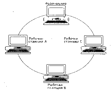 В сетях с кольцевой конфигурацией данные передаются от одного компьютера к другому, как правило, в одном направлении. Если компьютер распознает данные как «свои», то он копирует их себе во внутренний буфер. В сети с кольцевой топологией необходимо принимать специальные меры, чтобы в случае выхода из строя или отключения какой-либо станции не прервался канал связи между остальными станциями. Кольцо представляет собой очень удобную конфигурацию для организации обратной связи – данные, сделав полный оборот, возвращаются к узлу-источнику. Поэтому этот узел может контролировать процесс доставки данных адресату. Часто это свойство кольца используется для тестирования связности сети и поиска узла, работающего некорректно. Для этого в сеть посылаются специальные тестовые сообщения.