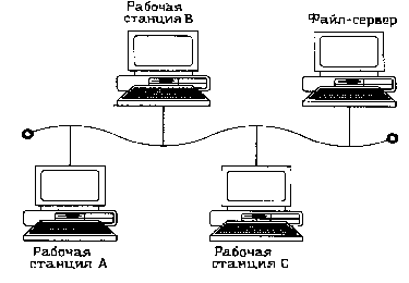 Для обеспечения функционирования локальной сети часто выделяется специальный компьютер – сервер, или несколько таких компьютеров. На дисках сервера располагаются совместно используемые программы, база данных и т. д. Остальные компьютеры локальной сети часто называются рабочими станциями. На тех рабочих станциях, где требуется обрабатывать только данные на сервере (например, вводить сведения в совместно используемую базу данных о заказах и продажах), часто для экономии (или по соображениям безопасности) не устанавливают жестких дисков. В сетях, состоящих более чем из 20-25 компьютеров, наличие сервера обязательно – иначе, как правило, производительность сети будет неудовлетворительной. Сервер необходим и при совместной интенсивной работе с какой-либо базой данных.