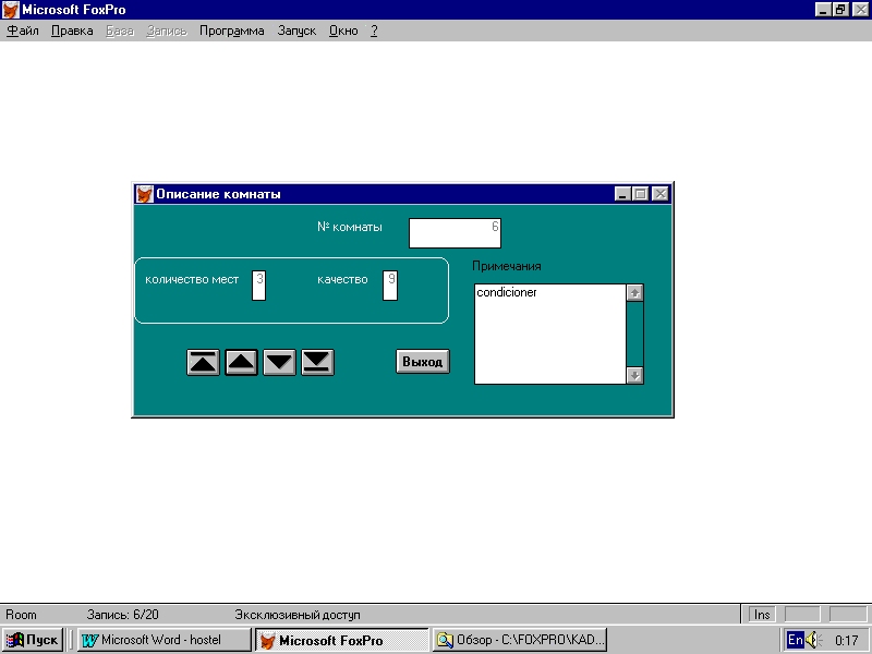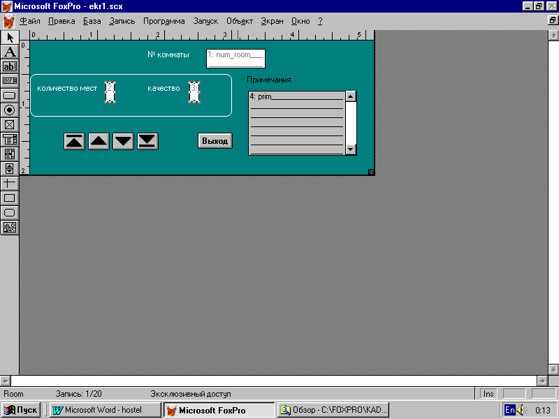 Предметная область: Управление общежитием, учет прибывших, убывших студентов, контроль над своевременной уплатой сумм за проживание в общежитие.