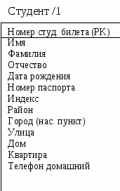 На рис 7. представлена схема отчета “Список студентов 4-го курса”