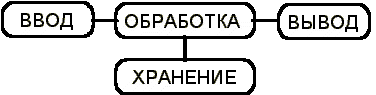 Любой компьютер (даже самый большой) состоит из четырех частей - устройства ввода информации, устройства обработки информации, устройства хранения и устройства вывода информации. Конструктивно эти части могут быть объединены в одном корпусе размером с книгу (компьютеры класса Notebook - записная книжка) или же каждая часть может состоять из нескольких достаточно громоздких устройств (большие компьютеры, такие как ЕС ЭВМ).