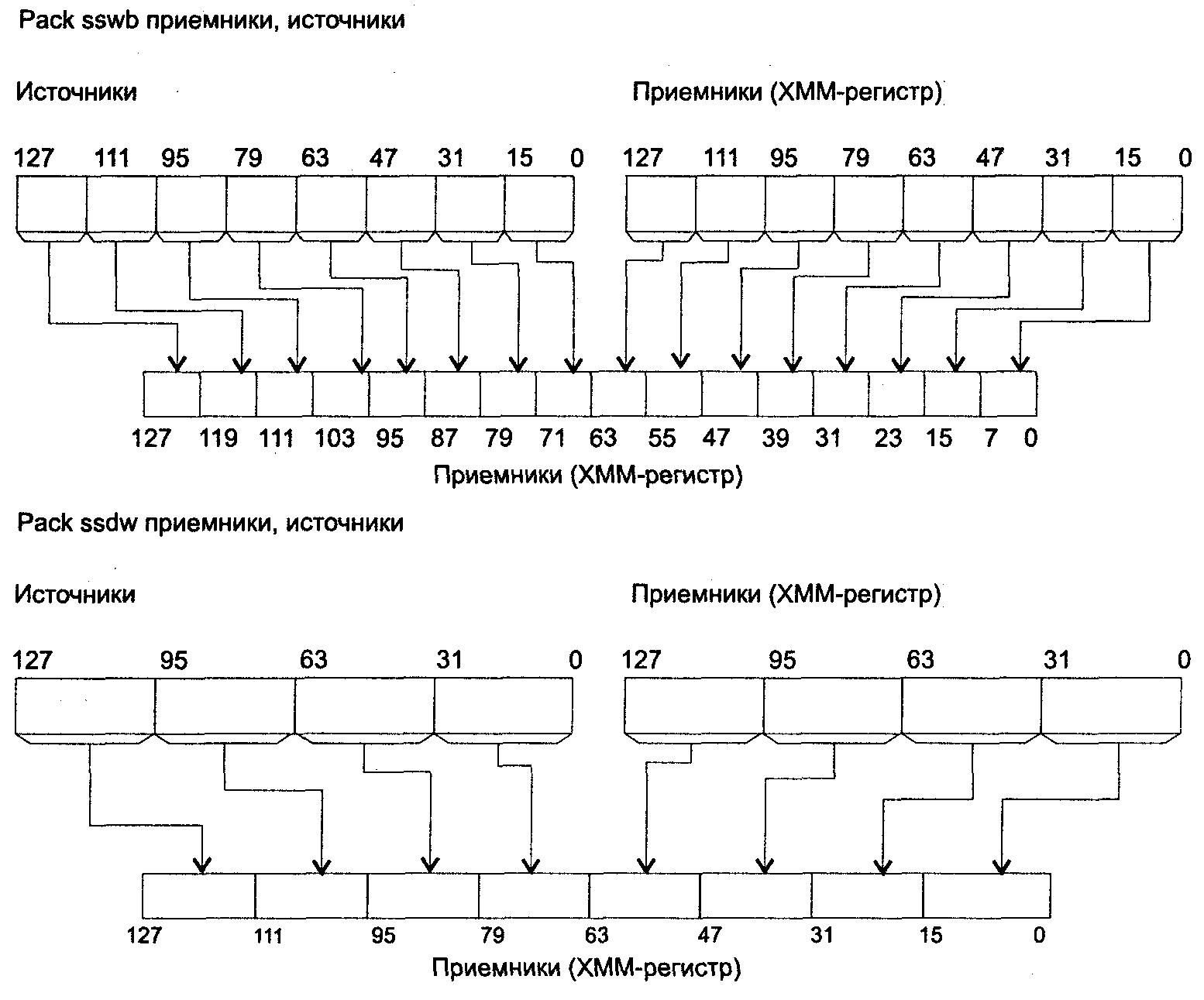 приемник[63–0]приемник[63–0]; приемник[127–64]исоточник[63–0];