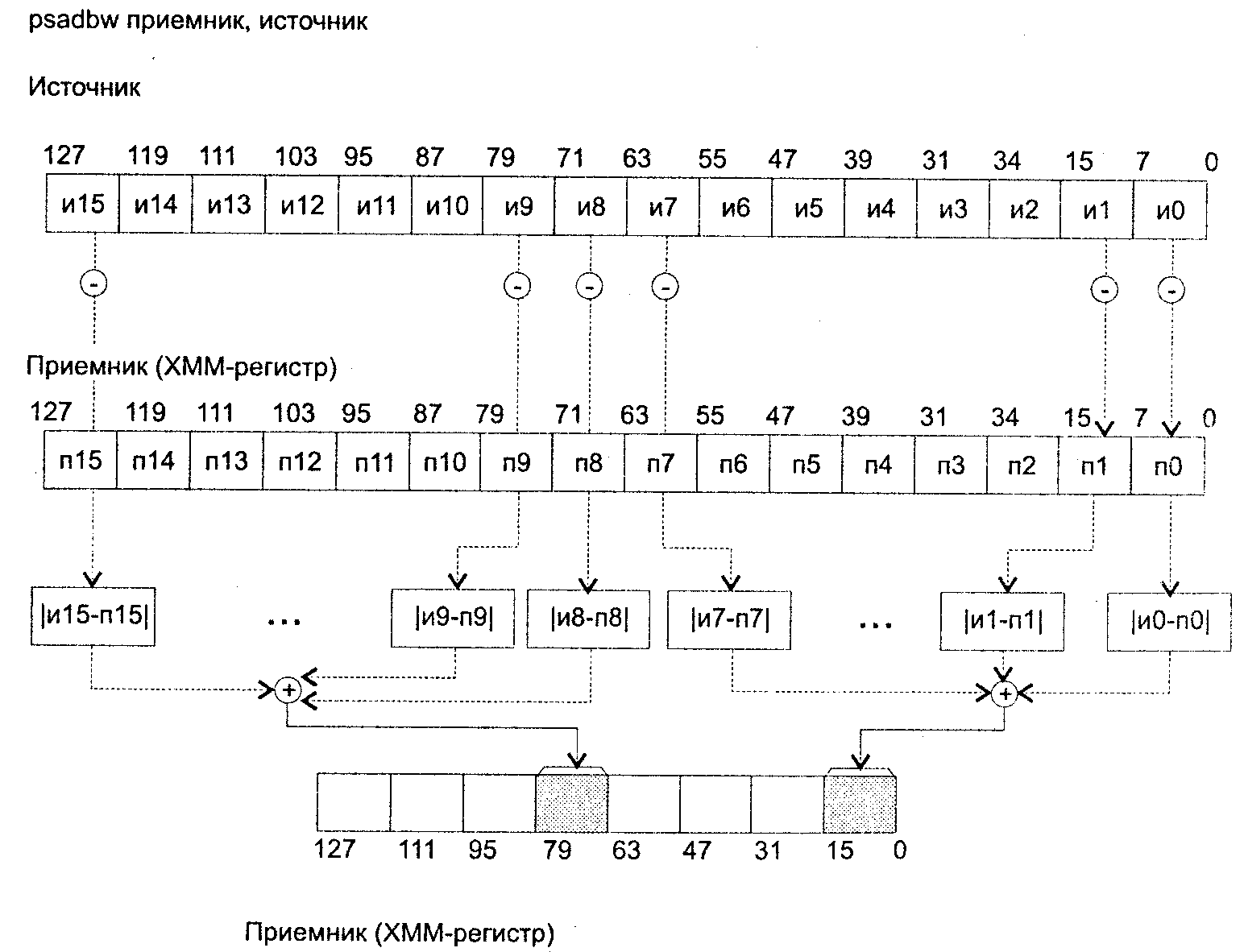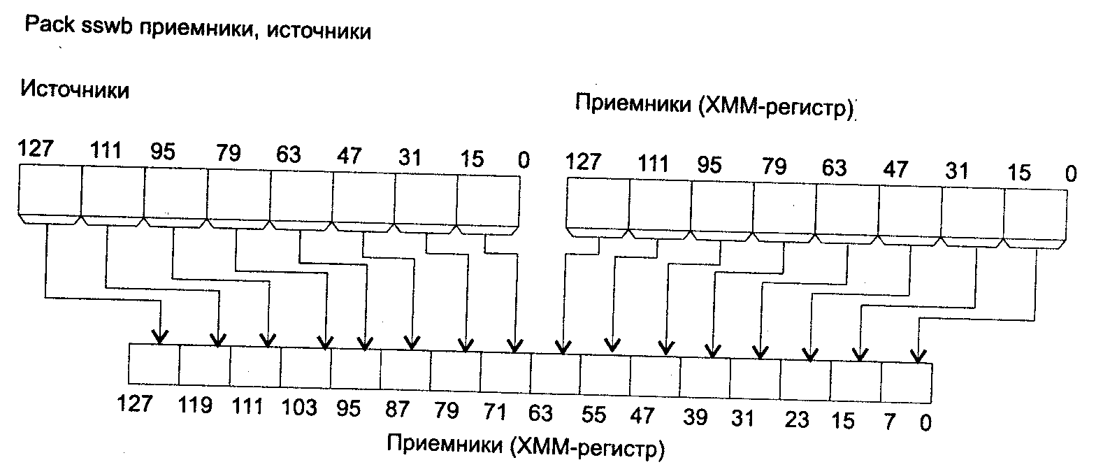 приемник[31–24]источник[15–8]; приемник[95–88] источник[47–40];