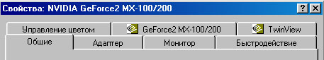 При щелчке на кнопке «Дополнительно» возможна настройка служебных параметров видеокарты. В зависимости от ее типа количество вкладок и информации на них может быть абсолютно различно и данные параметры должны настраиваться профессионалом. В качестве примера количество вкладок на машине, где набирался этот текст.