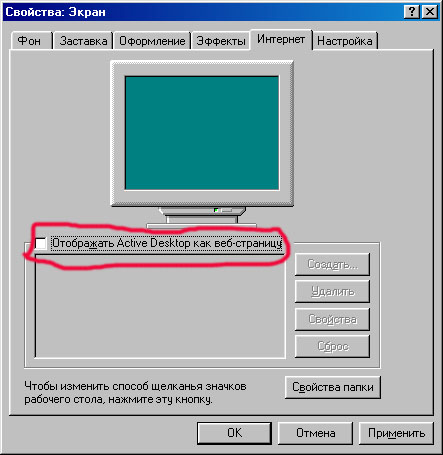 Вкладка «Интернет»: в случае установки переключателя, «обведенного карандашом» (см. рисунок внизу), появляется возможность переноса на рабочий стол активных каналов сети Internet.