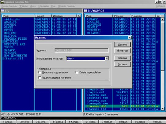 В качестве примера показан экран программы «Norton Commander» в момент удаления информации.
