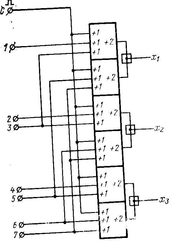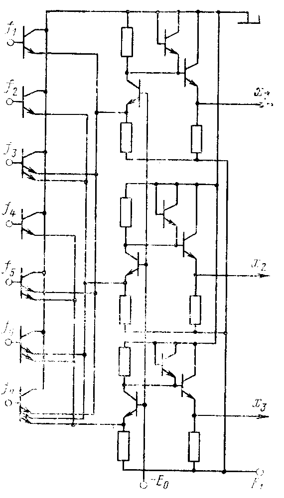 Рис. 6. Электрическая схема восьмерично-двоичного шифратора на переключателях тока