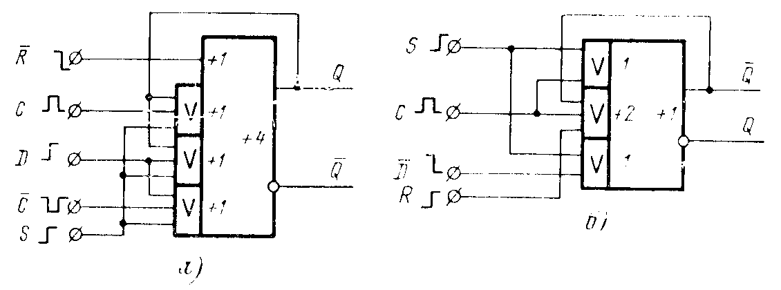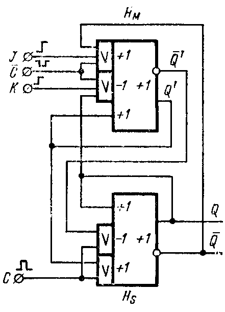 На рисунке 2-8 показан вариант JK-триггера, где используются однополярные тактирующие сигналы C и все выходы работают по позитивной логике.