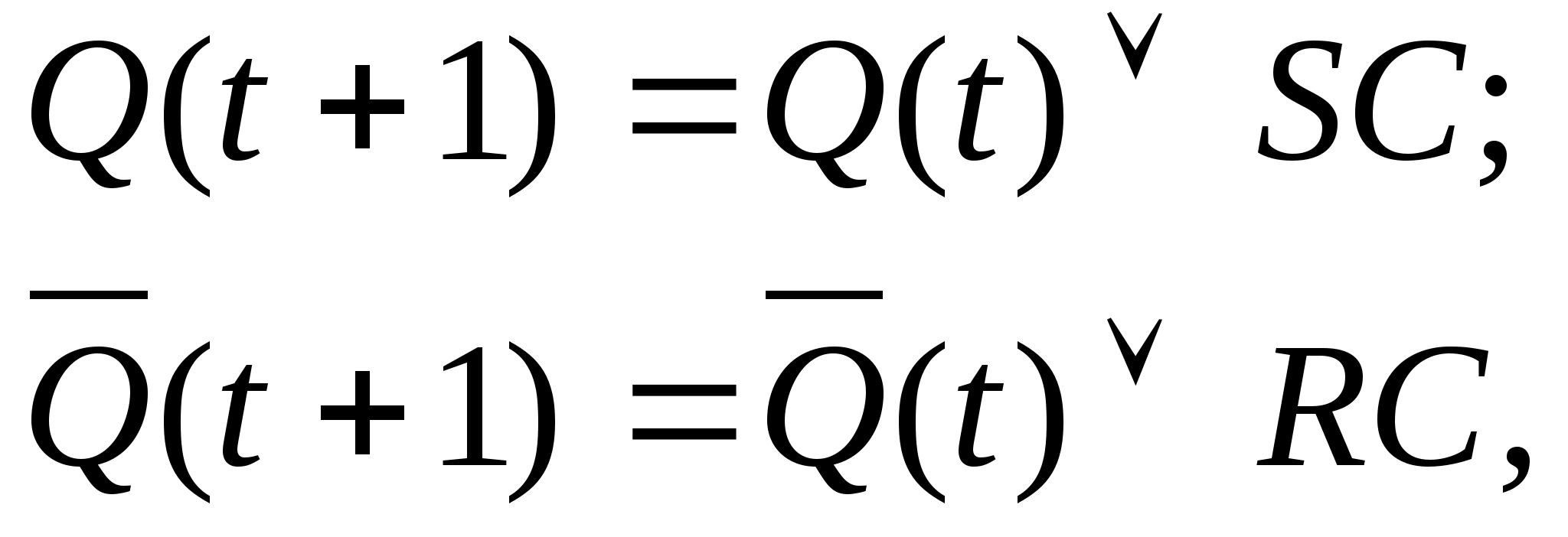 Работу синхронного RS-триггера аналитически можно представить следующей системой функций: