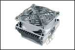 Кулер имеет просто гигантский игольчатый радиатор размером 118х75х45, на котором установлены два вентилятора размером 60х60х25. Вентиляторы установлены не посередине, а в верхней части кулера для того, чтобы обеспечить совместимость со всеми материнскими платами. Крепление сделано таким образом, чтобы обеспечить возможность установки как на SECC I, так и на SECC II процессоры.