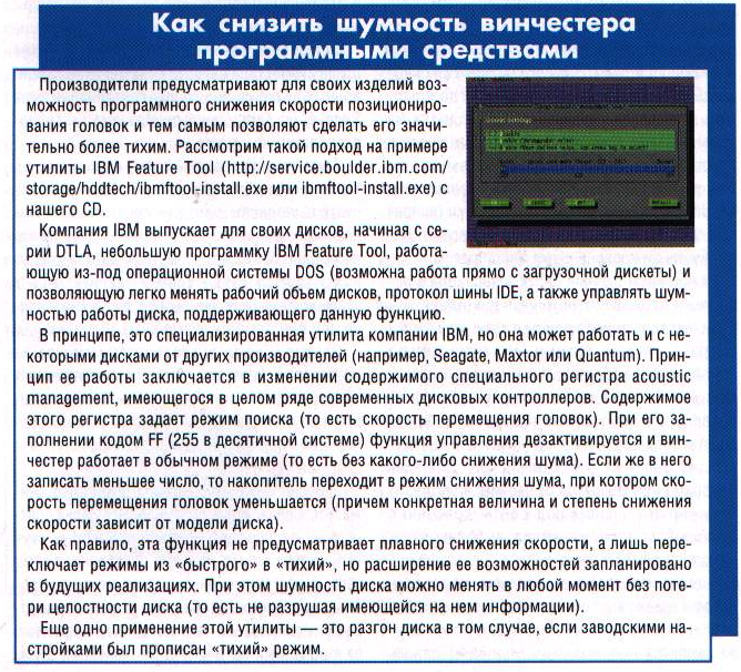 Дополнительной мерой по снижению шума накопителей может стать усовершенствование схемы крепления устройств в 5-дюймовых отсеках: необходимо хорошо укрепить сам отсек, а привод установить на виброизолирующих прокладках.