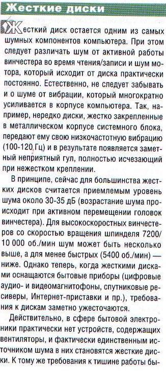 Как нетрудно заметить, самый существенный вклад в какофонию паразитных звуков от современного компьютера и периферии вносят многочисленные «кулеры». Средний уровень шума одного кулера составляет примерно 35 дБ, причем разброс от модели может быть весьма широк (см. например, «Энциклопедию кулеров» на htt://www.3dnews.ru/reviews/mainsysnem /coolers/)