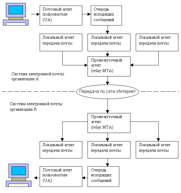 Электронная почта не использует географическую адресацию. Для того, чтобы ваше электронное письмо дошло до своего адресата, необходимо, чтобы оно было оформлено в соответствии с международными стандартами и имело стандартизованный почтовый электронный адрес. Общепринятый формат послания определяется документом под названием "Standard for the Format of ARPA - Internet Text messages", сокращенно - Request for Comment или RFC822, и имеет заголовок и непосредственно сообщение. Заголовок выглядит приблизительно так:
