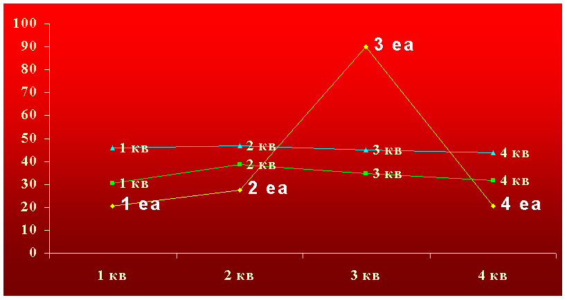 Диаграммы с областями показывают количественные изменения значений нескольких величин на протяжении некоторого интервала времени. Диаграммы-графики весьма похожи на них, но они скорее подчеркивают степень изменения величин, нежели количественное значение этих изменений.