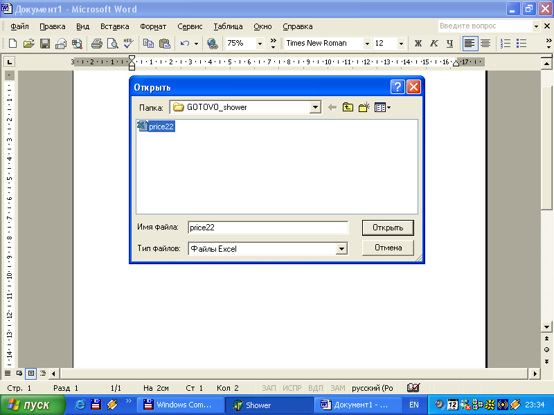 Для того чтобы отправить свой price лист на сайт необходимо его сначала набрать в Excel. Необходимое условие – обязательное количество столбов должно быть только четыре. Второй этап заключается в том, что бы запустить программу «Shower», программа запускается путем двойного клика на файле Shower.exe. Открытое окно выглядит в соответствии с рисунком 4.Папка с программой может находится в любой папке диска (по умолчанию Gotovo_Shower).