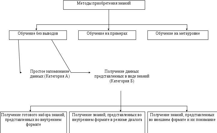 Приобретение знаний реализуется с помощью двух функций: получения информации извне и ее систематизации. При этом в зависимости от способности системы обучения к логическим выводам возможны различные формы приобретения знаний, а также различные формы получаемой информации. Форма представления знаний для их использования определяется внутри системы, поэтому форма информации, которую она может принимать, зависит от того, какие способности имеет система для формализации информации до уровня знаний. Если обучающаяся система совсем лишена такой способности, то человек должен заранее подготовить все, вплоть до формализации информации, т. е. чем выше способности машины к логическим выводам, тем меньше нагрузка на человека.