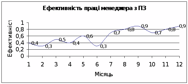 Проаналізувавши ці графіки можна зробити висновок що ефективність роботи менеджера підвищилася в де кілька разів. Це значно підвищує потенціал підприємства в цілому.