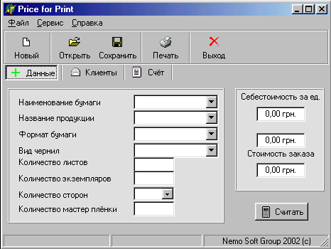 “Price for Print” призначена для підрахунку ціни за надані друковані послуги.