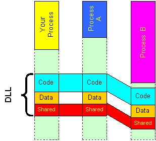 Это также означает, что вы не можете использовать в своей DLL ничего из MFC. Она не может быть ни MFC DLL, ни MFC Extension DLL. Почему? Потому, что она будет вызывать функции MFC. А где они? Ну, они в вашем адресном пространстве. А не в адресном пространстве Процесса A, написанного на Visual Basic, или Процесса B, написанного на Java. Таким образом, вы должны написать DLL на чистом C, и я бы рекомендовал совсем не использовать библиотеку времени исполнения C (CRT). Вы должны использовать только API. Используйте lstrcpy вместо strcpy или tcscpy, lstrcmp вместо strcmp или tcscmp, и т.д.