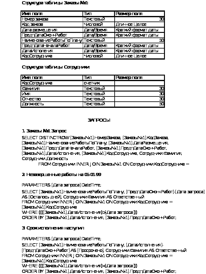 Например, для сортировки заказов по наименованию, надо активизировать окно “Наименование работы по Плану”, находясь при этом в поле формы, выбрать из меню “Записи” команду “Фильтр”, “Расширенный фильтр”. На экране появится поле, разбитое напополам по горизонтали. В нижней части экрана в строке “поле” выберите : “НаименованиеРаботыПоПлану”, в строке сортировка выберете, к примеру, по убыванию. Затем, активизируйте в меню “Фильтр” команду “Применить фильтр”. Используя расположенную в левом нижнем углу линейку прокрутки, просмотрите записи, которые теперь расположены в порядке, противоположном алфавитному. Теперь выберите команду “Удалить фильтр” из меню “Записи”. Заказы отсортированы по номерам.
